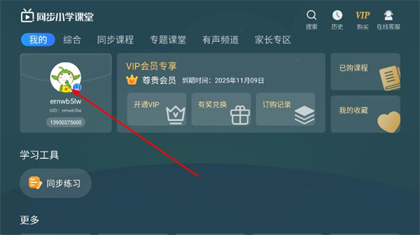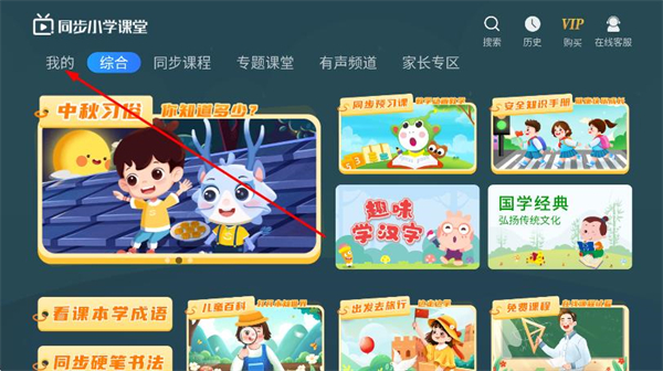 1、打開同步小學課堂,點擊頂部導航欄我的選項。
