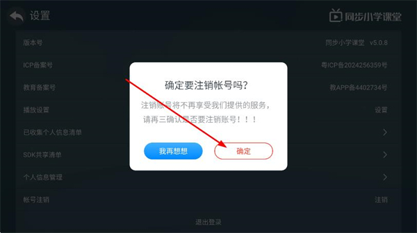 4、在彈出的提示框中,點擊確定,即可注銷賬號。