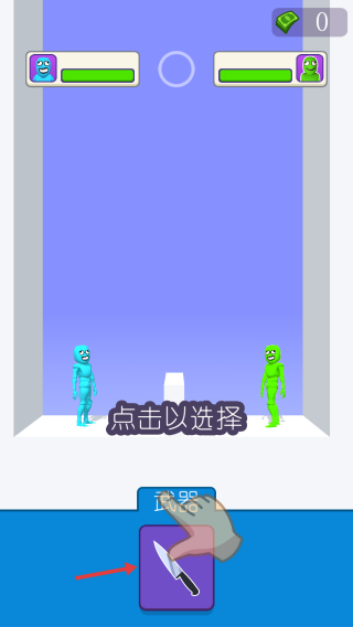 2、進(jìn)入對(duì)戰(zhàn)界面,看到點(diǎn)擊以選擇提示,點(diǎn)擊下方武器圖標(biāo)如刀,為角色選擇攻擊武器。