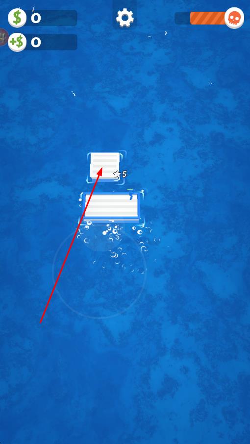 1、進入游戲后選擇橡皮人軍團顏色,駕駛木筏在海面航行,點擊漂浮的木板、輪胎等碎片收集資源,加固木筏擴大生存空間。