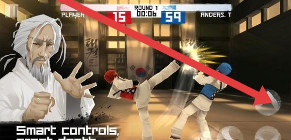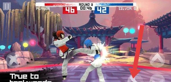 2、游戲中依照箭頭方向,操控角色(如跆拳道風(fēng)格人物)進(jìn)行攻擊或移動,觀察對手動作。