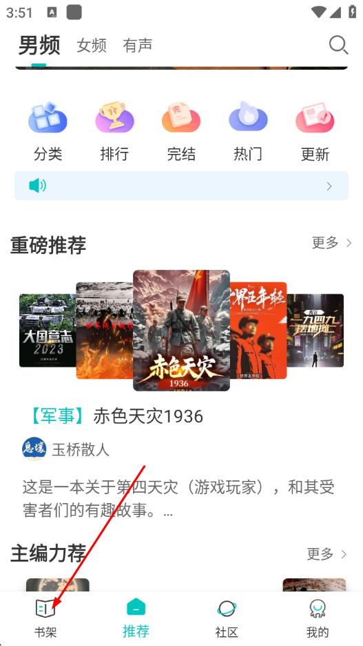 1、打開有毒小說App,點(diǎn)擊底部導(dǎo)航欄中的書架選項(xiàng)。