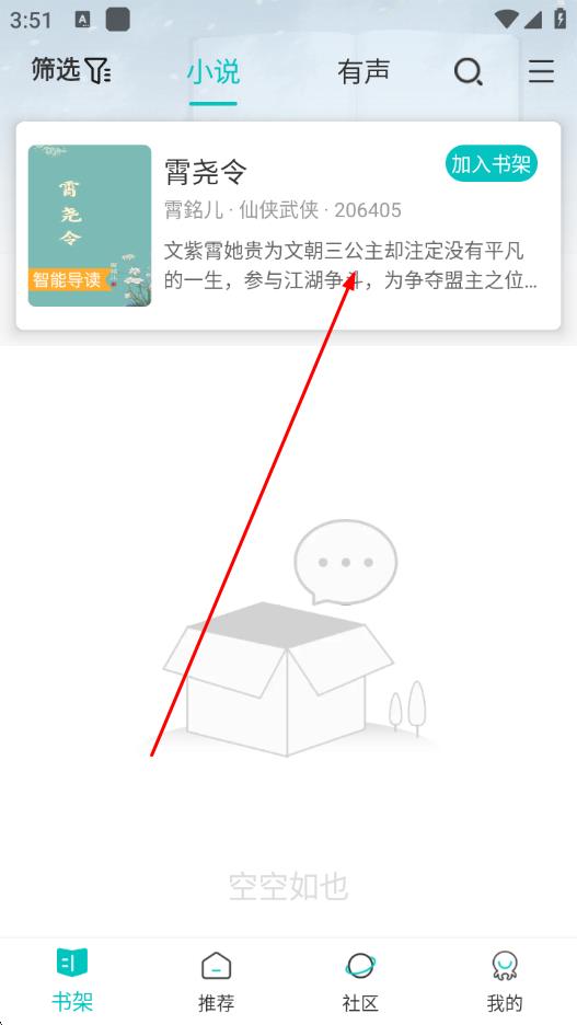 2、在書架頁面,點(diǎn)擊右上角智能導(dǎo)讀書本,進(jìn)入篩選或個(gè)性化推薦界面。