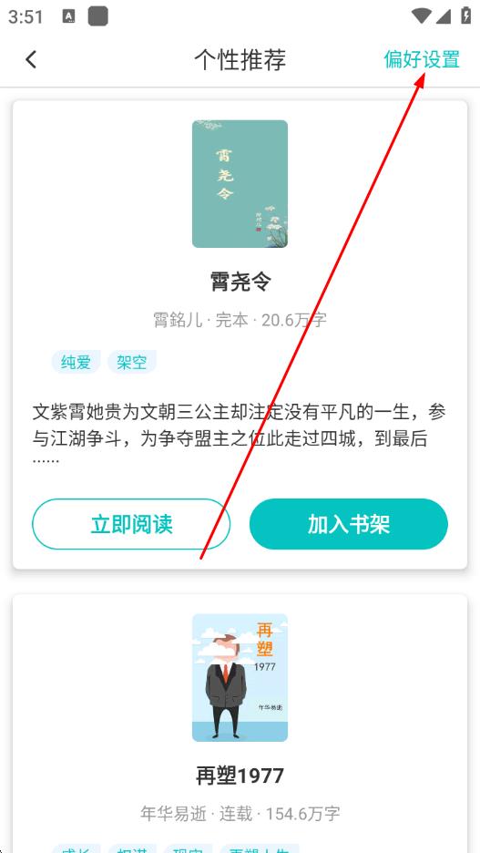 3、在個(gè)性化推薦界面,點(diǎn)擊右上角的偏好設(shè)置選項(xiàng)。