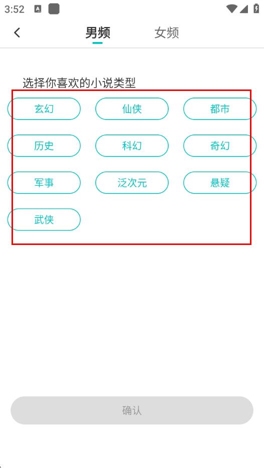 4、進(jìn)入偏好設(shè)置頁面后,“男頻分類下,選擇你喜歡的小說類型,比如玄幻、仙俠、都市等。