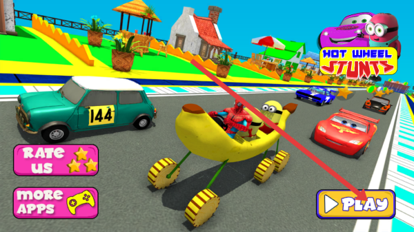 1、在蜘蛛俠瘋狂賽車的游戲界面,需要點(diǎn)擊【PLAY】,進(jìn)入游戲主流程,開啟趣味賽車冒險。