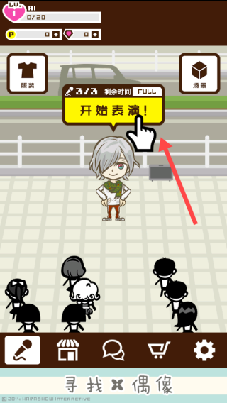 2、進(jìn)入表演場(chǎng)景,當(dāng)【開始表演!】提示出現(xiàn)時(shí),點(diǎn)擊該提示區(qū)域,開啟表演。