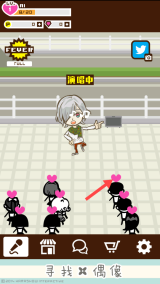 3、表演過程中,關(guān)注觀眾反應(yīng),通過表演吸引觀眾,使其頭上出現(xiàn)愛心,提升表演效果,收集愛心升級(jí)。