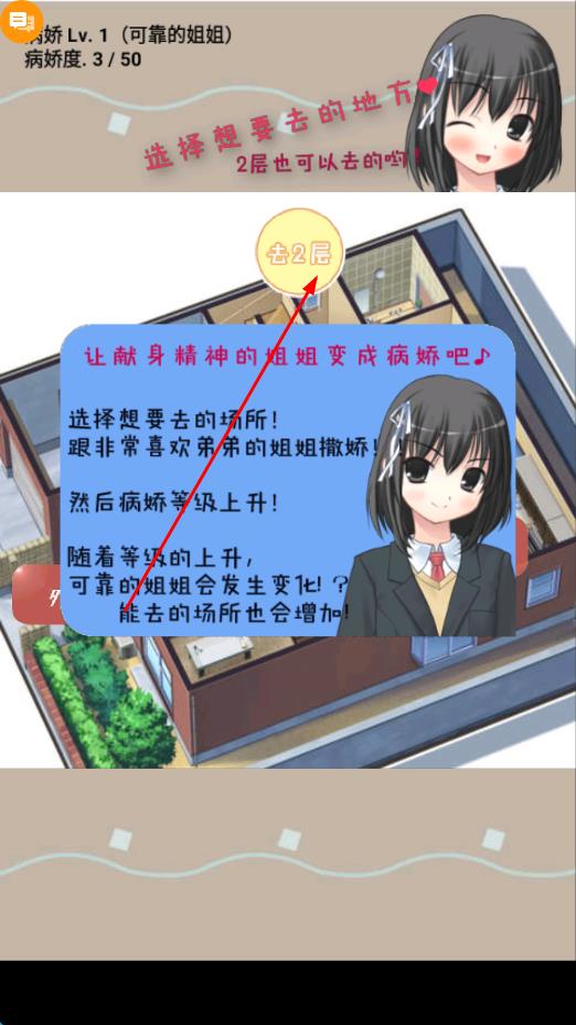 1、初入游戲,通過點(diǎn)擊輕松選擇想去的場(chǎng)所,像是溫馨的客廳、姐姐的臥室等,開啟與姐姐的互動(dòng)之旅。