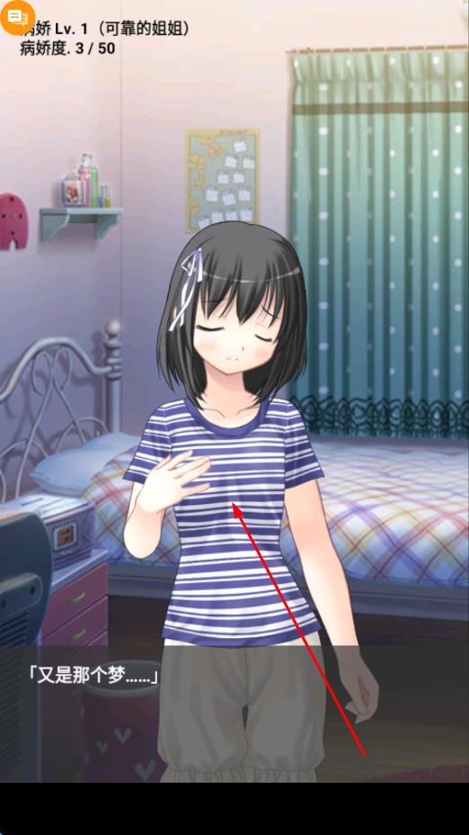 2、病嬌度成長系統(tǒng):獨(dú)有的病嬌度設(shè)定,依據(jù)你的選擇與互動(dòng),姐姐的病嬌度會(huì)動(dòng)態(tài)變化,病嬌等級(jí)的提升,將觸發(fā)姐姐不同的行為表現(xiàn)與情節(jié)發(fā)展。
