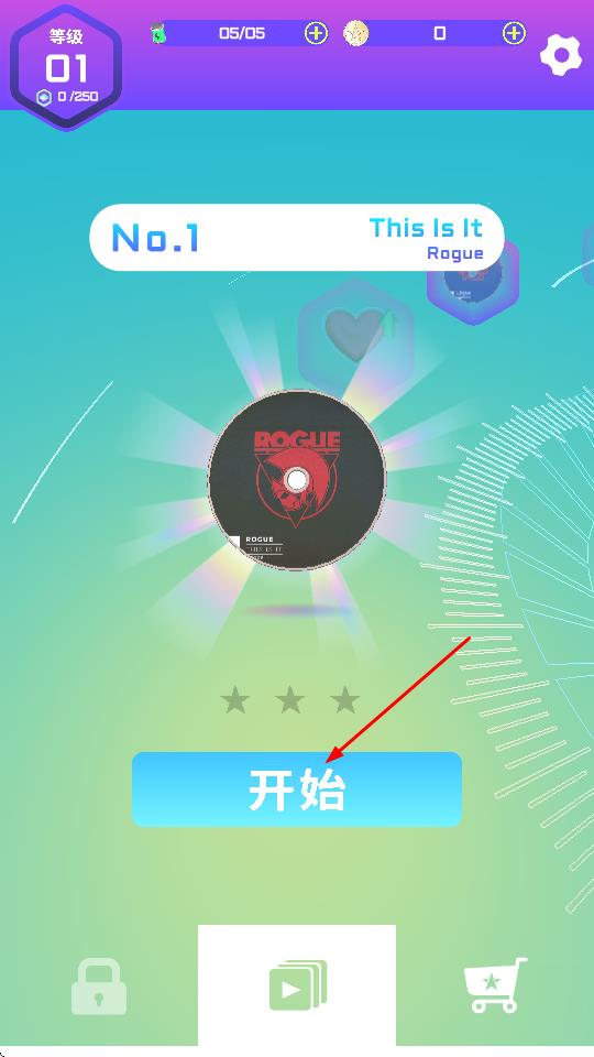 1、打開游戲后,在主界面歌曲列表中,點擊選擇一首喜歡的曲目,進入3D賽道場景,點擊【開始】按鈕啟動游戲。