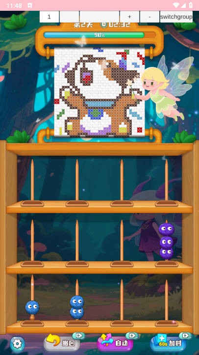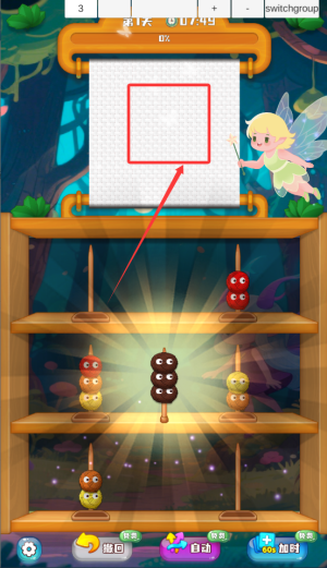 3、進入關(guān)卡后點擊拾取毛線柱開始消除,觀察目標圖案輪廓規(guī)劃消除順序。
