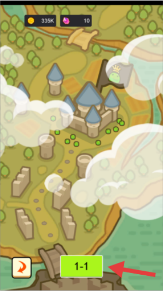 3、資金足夠后,在地圖界面點(diǎn)擊關(guān)卡【1-1】,進(jìn)入關(guān)卡開啟冒險(xiǎn)。