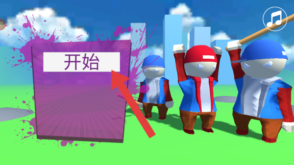 1、從畫面中人物造型推測(cè)是橡皮人題材,畫面左側(cè)紫色區(qū)域有個(gè)寫著【開始】的按鈕,提示玩家點(diǎn)擊進(jìn)入,玩家操控橡皮人角色進(jìn)行相關(guān)活動(dòng)。