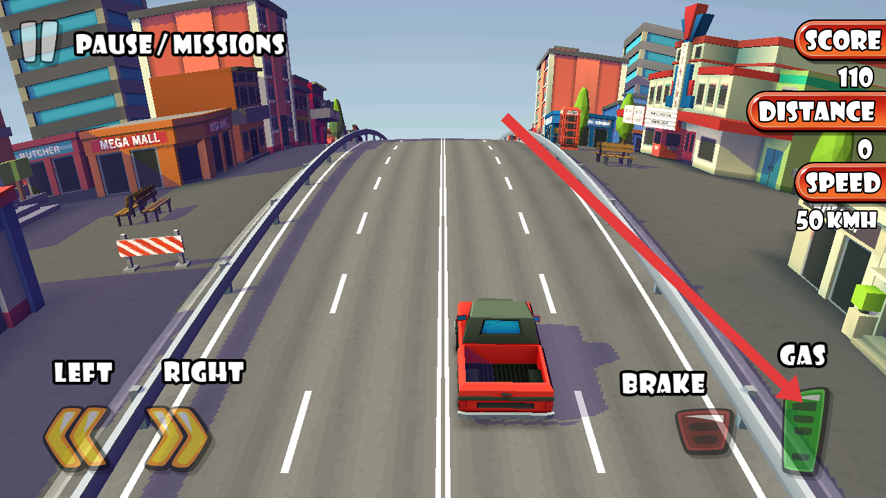 2、在駕駛自己的車輛時,需要點擊右側(cè)綠色【GAS】的按鈕進行加速,控制車輛在道路行駛。