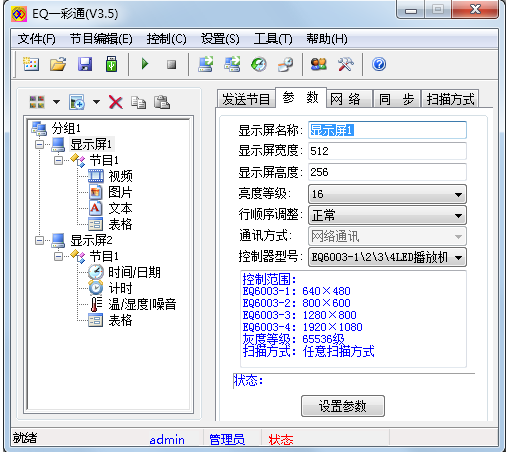 EQ一彩通是一套功能強(qiáng)大,使用方便,簡單易學(xué)的節(jié)目制作、播放軟件,專為全功能異步全彩/灰度系列LED控制器設(shè)計(jì)開發(fā)。具有強(qiáng)大的節(jié)目編輯功能,如:支持多種格式的視頻、模擬和數(shù)字時(shí)鐘、正計(jì)時(shí)和倒計(jì)時(shí)、多種圖片格式、word文檔和excel表格;還具有豐富的動畫方式,支持46種進(jìn)場動畫和47種出場動畫;另外,本軟件還具有分組管理和多用戶管理功能,給用戶提供更方便、更安全的顯示屏管理。