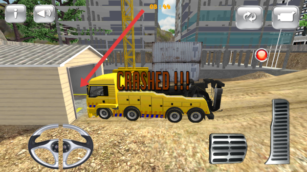 3、若卡車碰撞到物體顯示【CRASHED】,則游戲失敗,需重新開始,駕駛時要小心操作避免碰撞。