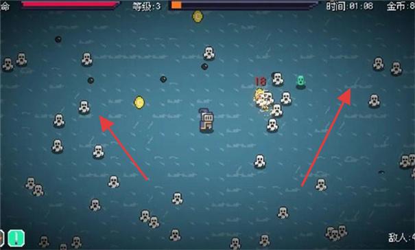1、玩家操控角色在充滿敵人的場(chǎng)景中生存,通過(guò)移動(dòng)躲避敵人攻擊,同時(shí)進(jìn)行反擊。
