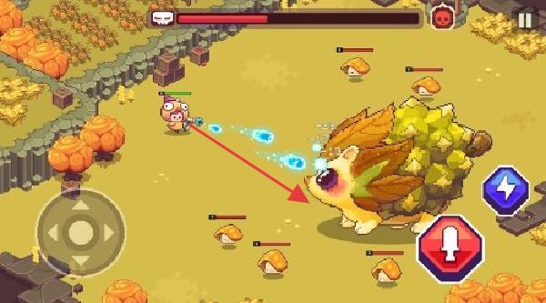3、進(jìn)入戰(zhàn)斗場景后,玩家操控角色與敵人戰(zhàn)斗,利用虛擬搖桿和技能按鈕來攻擊敵人,完成冒險(xiǎn)任務(wù)。