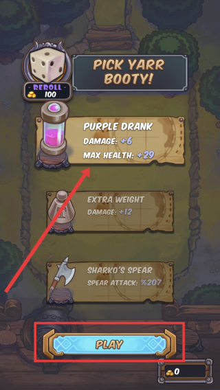 3、在獎勵選擇界面,可根據(jù)需求選擇獎勵,選擇完畢后點擊下方【PLAY】按鈕,繼續(xù)游玩。