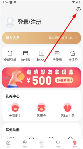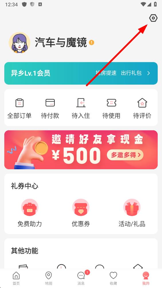 1、在異鄉(xiāng)好居app我的頁面,點擊右上角設置圖標,進入設置界面。