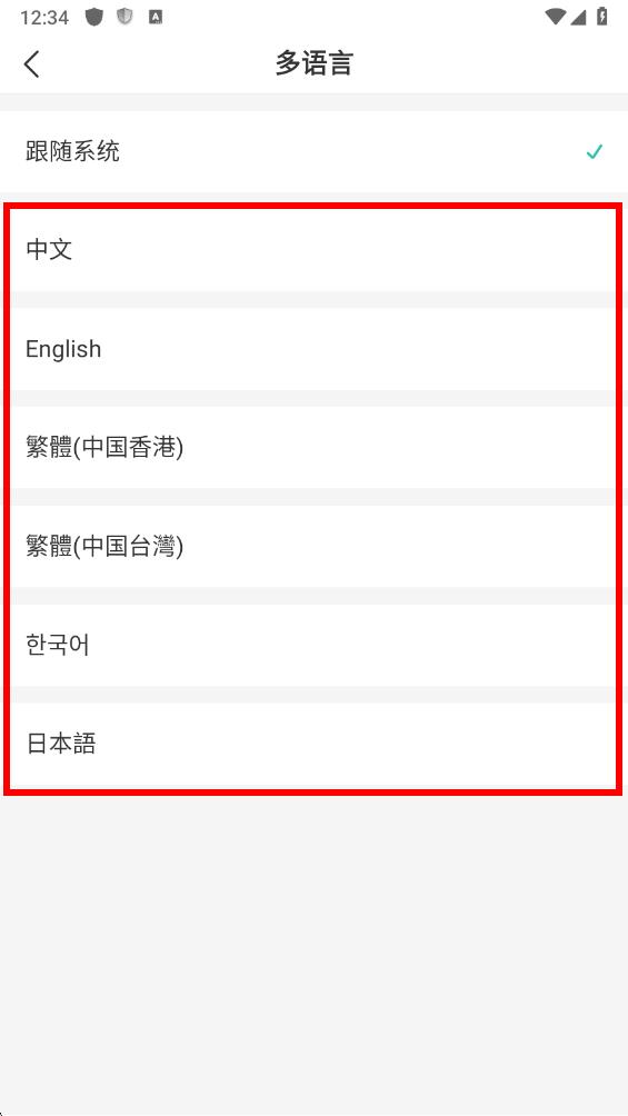 4、在多語言頁面中,選擇你想要設置的語言,點擊對應選項即可完成語言設置。