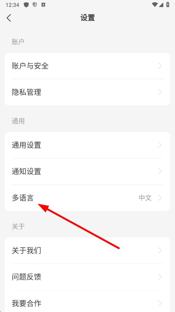 3、在設置頁面里,找到并點擊多語言選項。