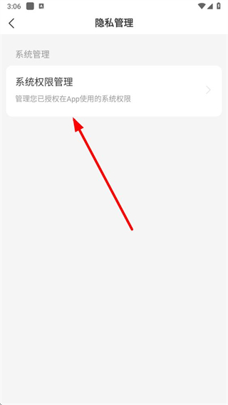 3、在隱私管理頁面,點擊系統(tǒng)權限管理選項,進入權限設置相關界面。