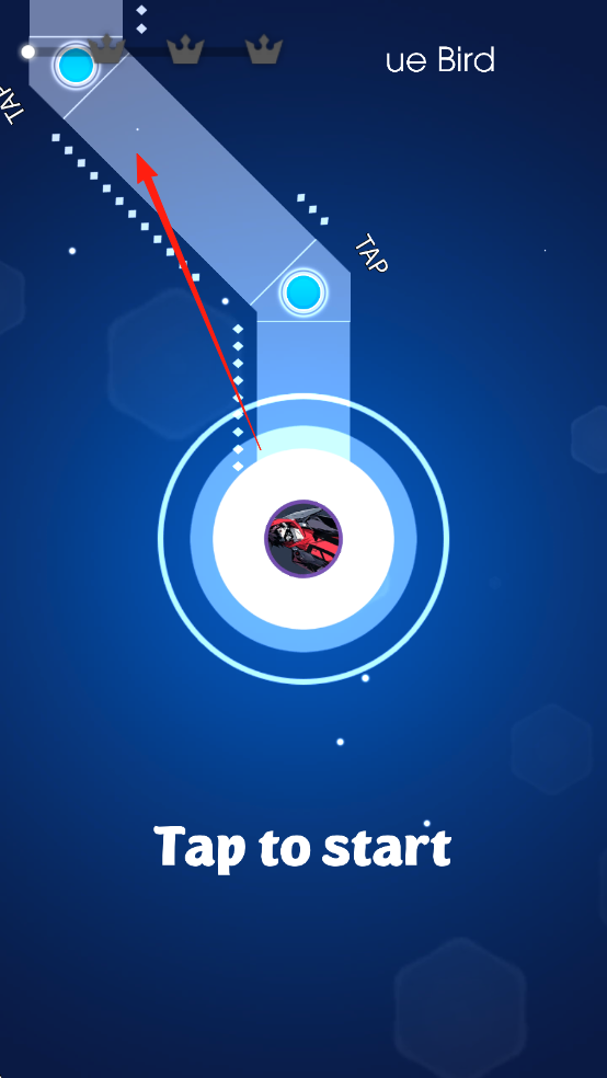 3、進(jìn)入游戲后,根據(jù)提示“Taptostart”點(diǎn)擊屏幕開(kāi)始,游戲中需按照紅色箭頭指示,點(diǎn)擊屏幕操控游戲元素移動(dòng),跟隨音樂(lè)節(jié)奏,完成關(guān)卡挑戰(zhàn)。