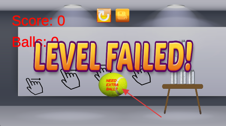 3、球用完未破罐則【LEVEL FAILED!】,若需額外球可選擇,否則重新開(kāi)始,注意球的使用。