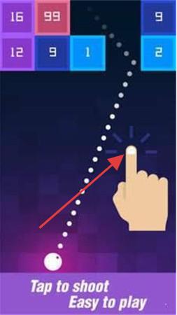 1、進(jìn)入游戲界面,依據(jù)“Taptoshoot”提示,點(diǎn)擊屏幕發(fā)射小球,輕松開啟游戲。