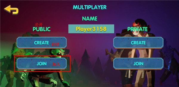 2、在公共房間和私人房間選擇創(chuàng)建房間或者加入房間都可以。