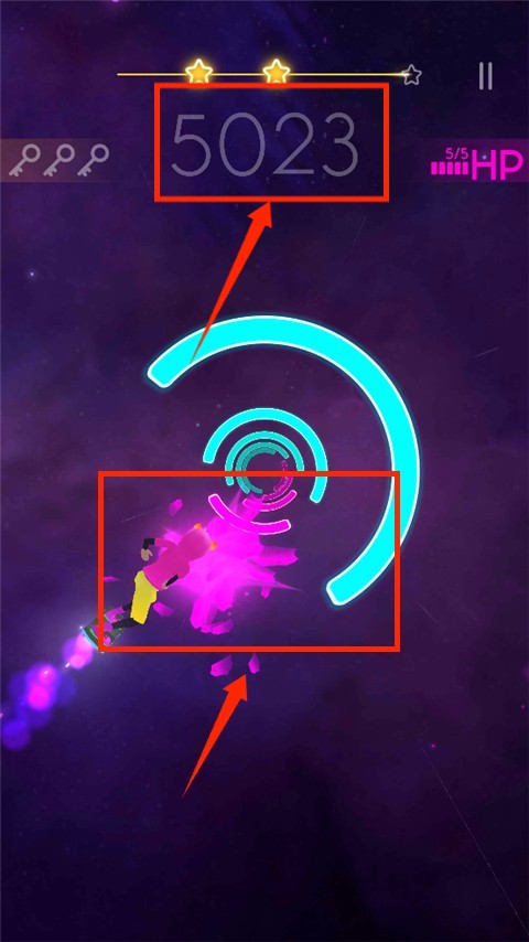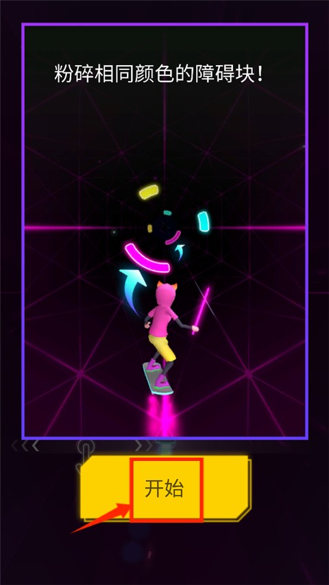 2、控制你的角色左右移動(dòng),精準(zhǔn)粉碎與角色顏色匹配的障礙塊。