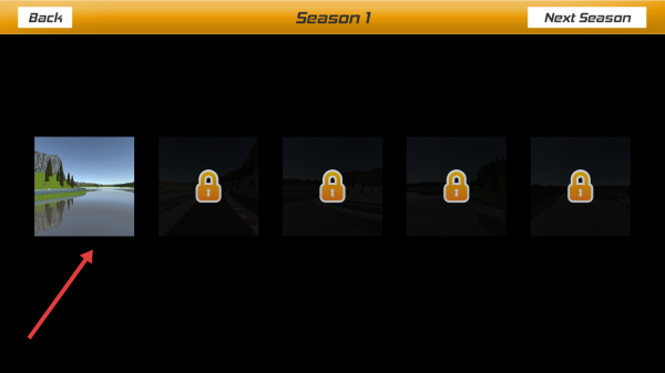 2、在【Season1】關(guān)卡選擇界面,點擊箭頭所指的未鎖定關(guān)卡,進入比賽。