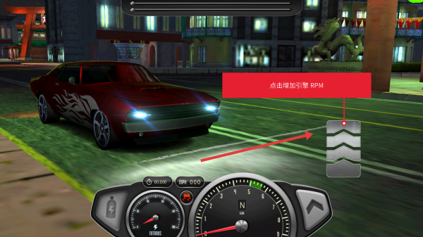 1、游戲中,看到提示【點(diǎn)擊增加引擎RPM】,點(diǎn)擊右側(cè)對(duì)應(yīng)按鈕提升引擎轉(zhuǎn)速。