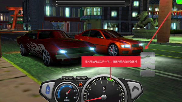 3、依據(jù)提示【好的開始是成功的一半,請(qǐng)將箭頭在綠色區(qū)域】,把控好操作時(shí)機(jī),確保比賽良好開局。