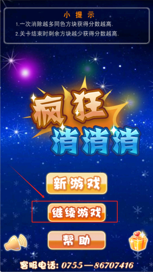 2、點(diǎn)擊繼續(xù)游戲,可以繼續(xù)之前的未結(jié)束的游戲,這樣會(huì)讓你避免重復(fù)簡(jiǎn)單關(guān)卡,挑戰(zhàn)更高難度。