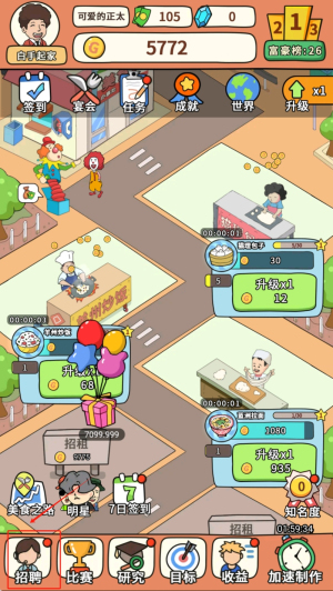 3、離線收益機制貼心實用,歇業(yè)期間仍可獲得基礎(chǔ)經(jīng)營收入,讓玩家不必時刻在線也能持續(xù)發(fā)展,給予玩家更多的游戲自由度。