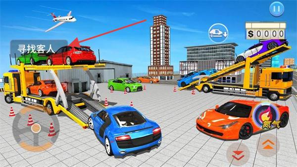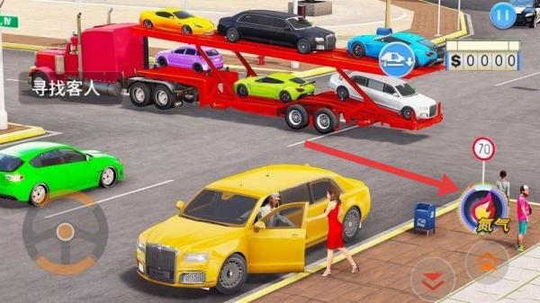 1、在游戲中,操控黃色轎車靠近路邊箭頭所指的乘客,搭載乘客。