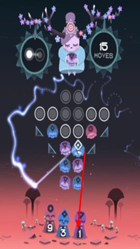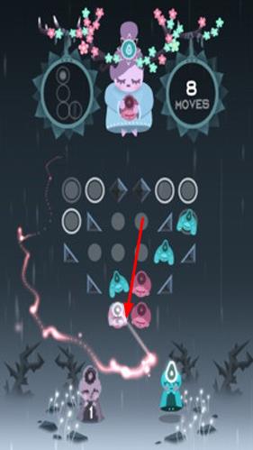1、玩家進(jìn)入游戲后,首先看到上方角色ruya釋出形狀,需與中間區(qū)域同色形狀抵消,開啟首關(guān)消除解謎之旅。