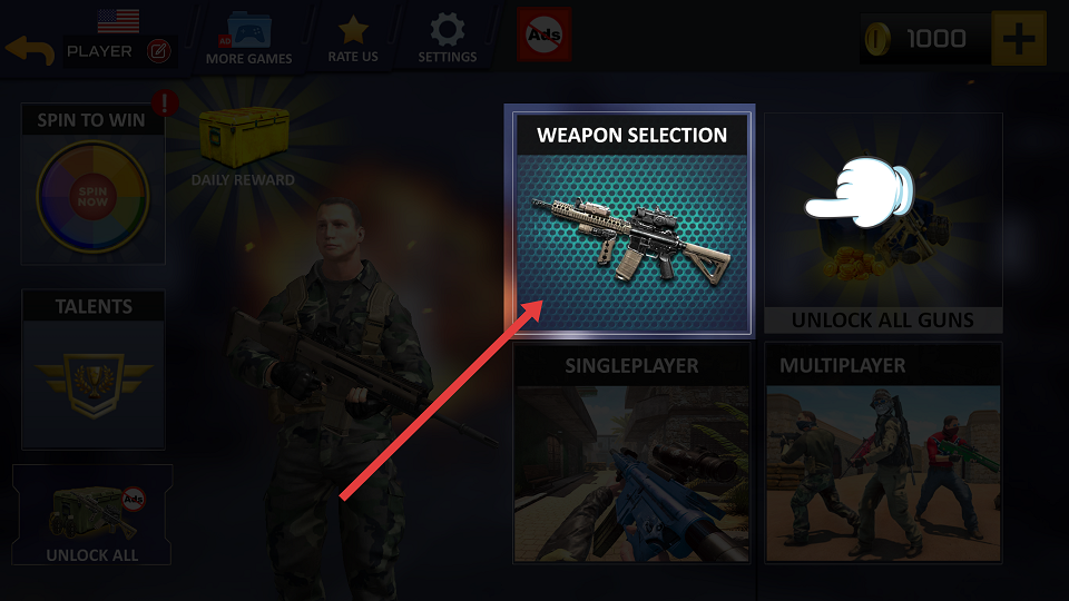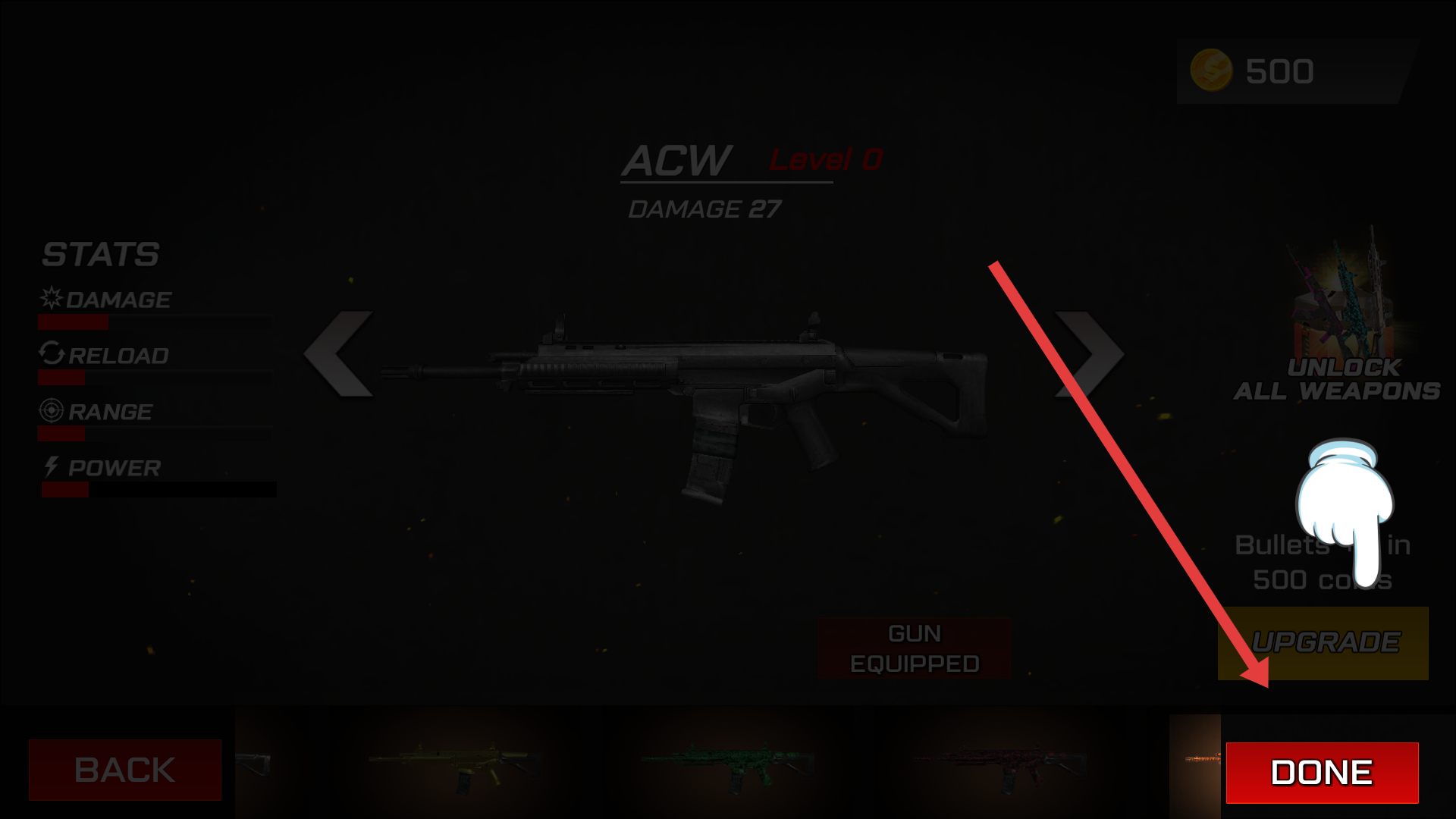 2、從手槍到火箭筒任君挑選,然后點(diǎn)擊DONE完成正式邁入戰(zhàn)場(chǎng)。