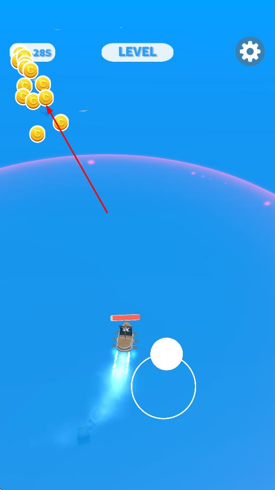1、玩家通過屏幕上的虛擬搖桿操控船只在藍色海洋場景中移動,可調整方向,躲避障礙或接近目標。