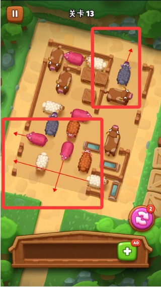 1、你將面對(duì)一個(gè)封閉的圍欄區(qū)域,每關(guān)的目標(biāo)是將所有動(dòng)物按照正確的順序引導(dǎo)出柵欄,避免相互阻礙造成路線卡死。