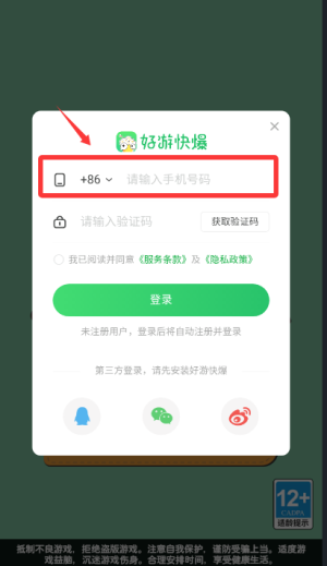 1、打開游戲后,點(diǎn)擊輸入你的手機(jī)號碼。