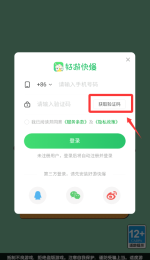 3、收取驗證碼后,點(diǎn)擊輸入驗證碼,然后點(diǎn)擊登錄即可。