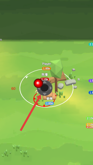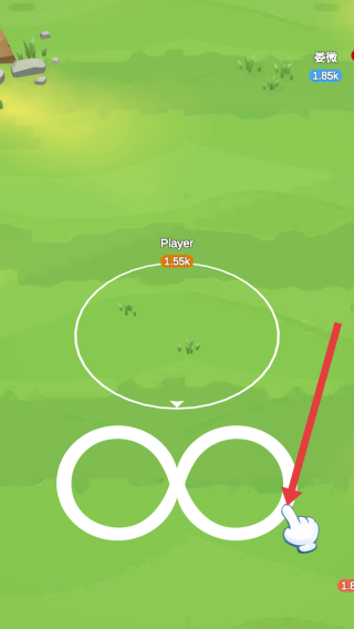 2、在草地場(chǎng)景,跟隨指引點(diǎn)擊雙環(huán)圖標(biāo),操控【Player】移動(dòng),熟悉操作方式。