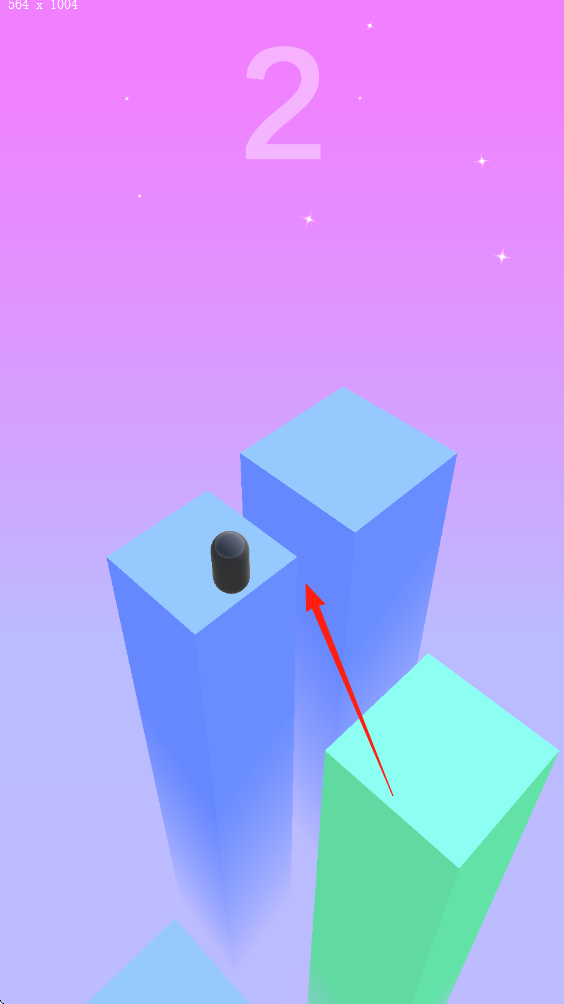 1、長按屏幕控制黑色圓柱蓄力,松開使其跳躍到相鄰方塊,保持在方塊上前進(jìn)。
