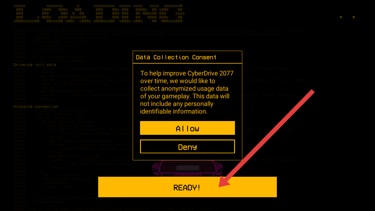 1、在霓虹之眼危險駕駛的游戲開始前,需要點擊底部【READY】的按鈕,進入游戲場景。