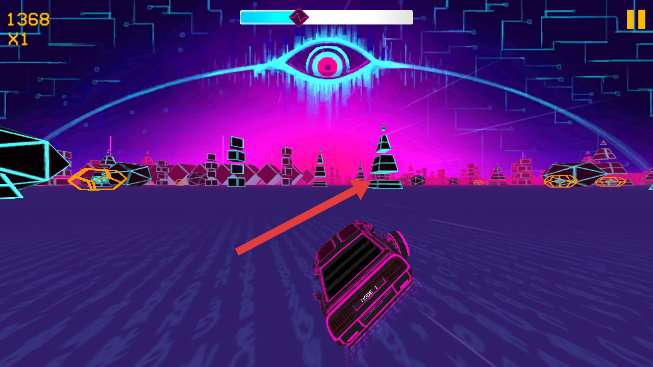 2、在霓虹之眼危險駕駛游戲中,操控車輛朝著箭頭指示的方向行駛,避開障礙物,收集目標物品。