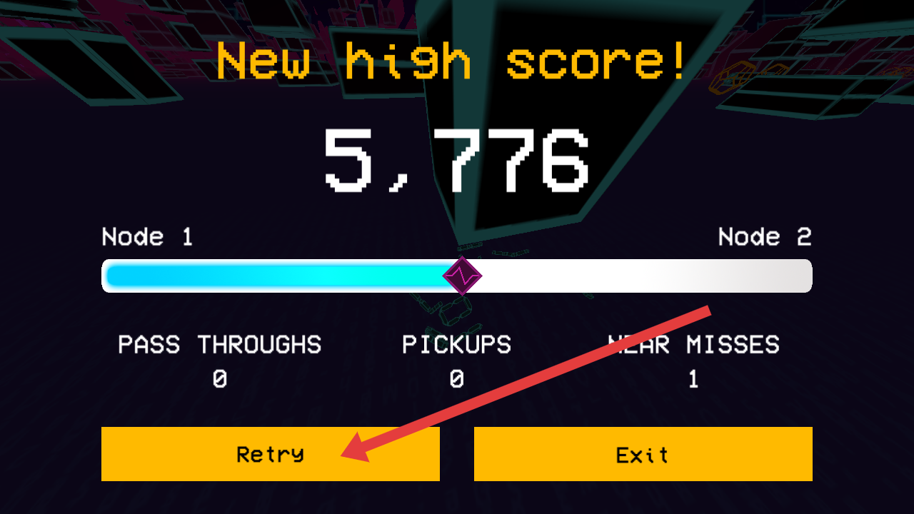 3、當碰到障礙物游戲將會結束,若想重新挑戰(zhàn),需要點擊【Retry】的按鈕,再次進入游戲。